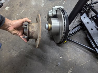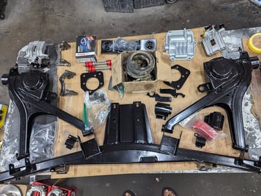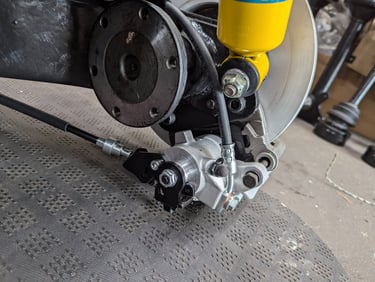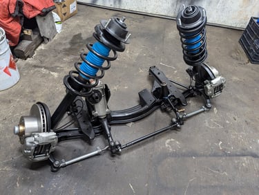 For this BMW 2002, we went beyond simple suspension repairs and carried out a full restoration and upgrade. Both the front and rear subframes were pulled from the car, sandblasted, rebuilt, and refinished with fresh paint for durability. Every suspension component was inspected and restored, with worn parts replaced to bring back precise handling. To complement the rebuilt suspension, we also installed a larger brake upgrade for improved stopping power.