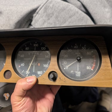 This classic BMW 2002 gauge cluster was carefully restored to bring back both its function and original charm. The cluster was fully disassembled, cleaned, and inspected. Faded faces and worn needles were refinished, while lighting and mechanical components were repaired or replaced as needed. The housing and trim were also refreshed to complete the restoration.